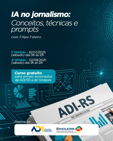 IA no jornalismo: Sindijore RS e ADI-RS promovem curso gratuito para associados