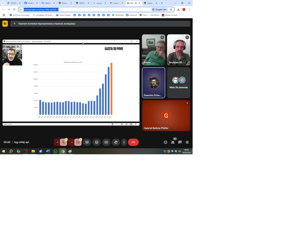 Ocorreu na manhã da sexta-feira, dia 16, em live realizada pelo Sindijore RS, via Plataforma Google Meet, o evento com a participação do jornalista Ewandro Schenkel, diretor de redação da Gazeta do Povo, que em cerca de uma hora e trinta minutos, compartilhou com os participantes a trajetória da Gazeta do Povo em sua migração do universo impresso, de 2017 em diante, para se tornar um veículo de comunicação totalmente digital e de alcance nacional, com atualmente pelo menos 143 mil assinantes mensais.