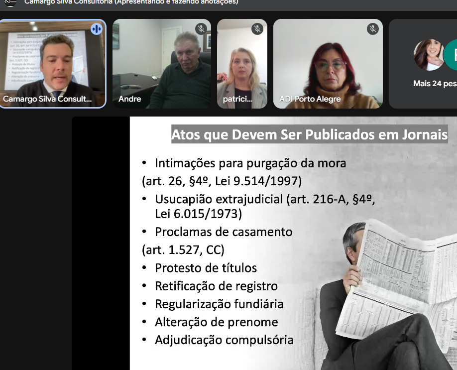 Na palestra, o Dr Bruno Camargo também mencionou novas possibilidades adotadas para as publicações de jornais no mercado extrajudicial e salientou a importância da transparência e credibilidade da mídia jornalística para tais publicações.