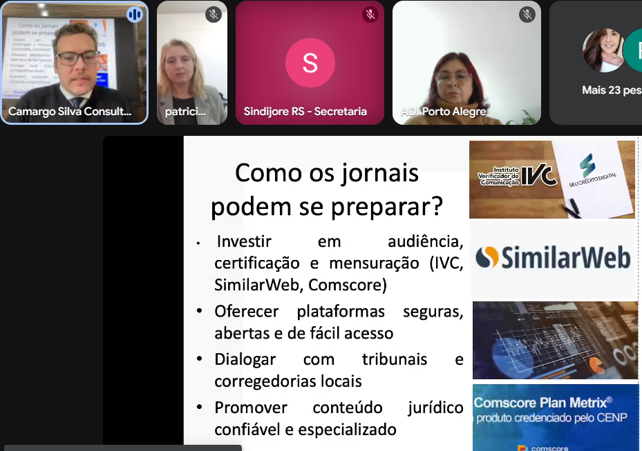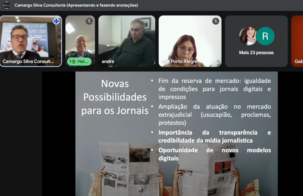 Ocorreu na manhã desta sexta-feira, 11, através da plataforma Google Meet, a palestra online com o advogado, Dr. Bruno Camargo, que abordou das 10h até o meio-dia, os principais impactos e como os jornais diários devem se adequar em relação a decisão do Conselho Nacional de Justiça (CNJ), sobre o meio jornal impresso como sendo o meio mais efetivo e seguro para as publicações.